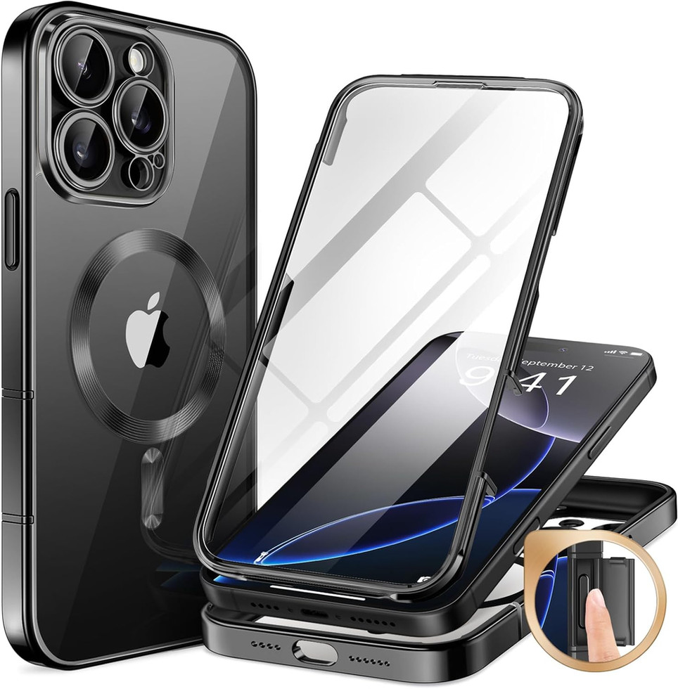 - [360°Full-Body Protection] The 16 Pro phone case is designed with dual-layer glass front and back cover that provides 360-degree full-body rugged protection against scratches and impact damage. Cushioned corners protects your phone from accidental drops