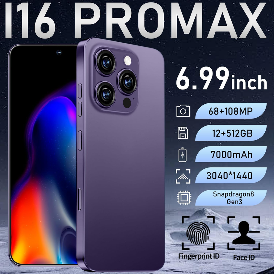 I16 Promax Smartphone Unlocked Cell Phone, 6.99“ HD Screen5G Phone, 12+512GB Pho
