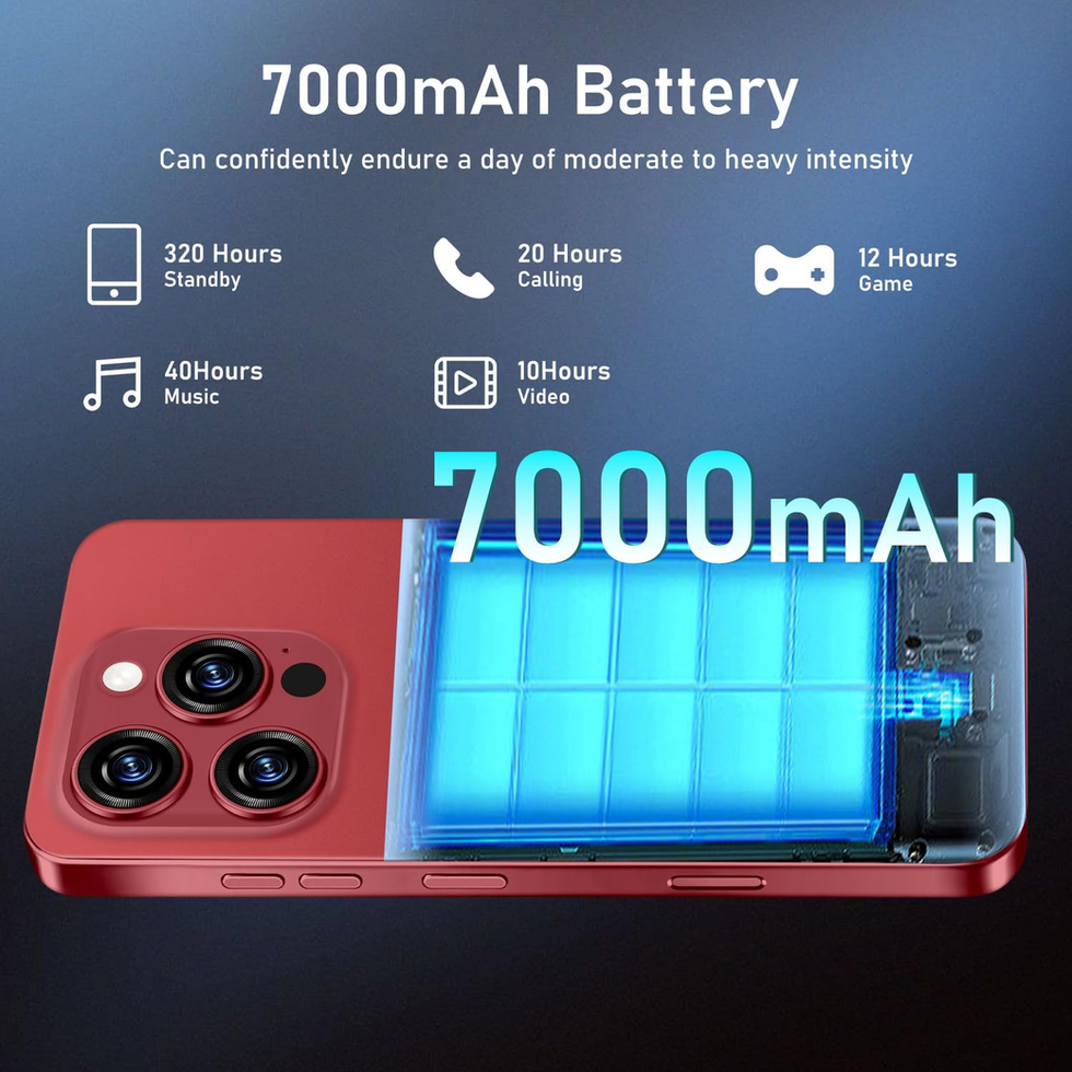 - đ±ăLONG LASTING BATTERYă. With the 7000mAh big battery and own battery saving technology, smartphone unlocked can confidently last a full day of medium-to-heavy use without charging. Equipped with 20W fast charging, it can charge quickly when you needed