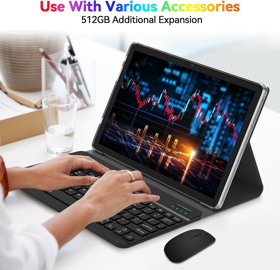 - 【Exquisite Tablet】This 2 in 1 tablet, equipped with a Bluetooth keyboard, mouse, and stylus, can be easily converted into a portable notebook and can be instantly converted into a work mode anywhere. This is the best tablet for colleagues, friends, family, and business people.
