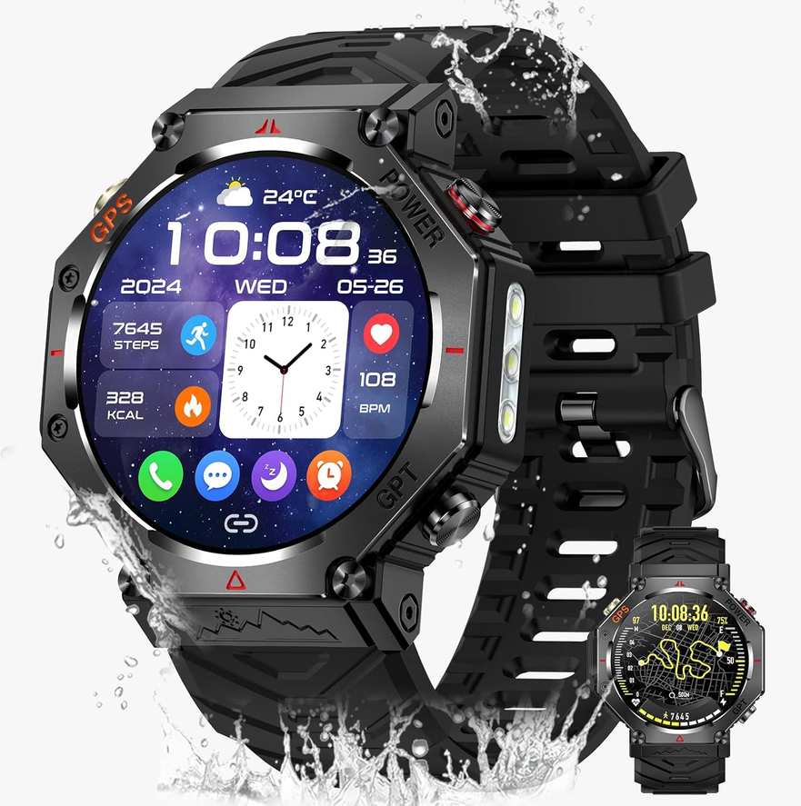 - 【3ATM Waterproof & Rugged Build】 Engineered for outdoor conditions with 3ATM waterproof protection. Whether you're sweating, washing hands, or caught in rain—this rugged smart watch handles it all