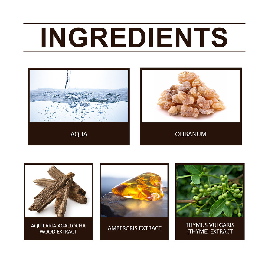 Our black wood niche perfume contains frankincense, agarwood extract, amber extract. It can add a rich wood aroma, enhance the depth and longevity of the perfume. Add soft layers to enhance the depth and durability of the perfume. Its application is simple: 1. Lightly spray the perfume on the wrists, neck, chest and other pulse points; 2. Spray 1-2 times each time to achieve the best results of perfume distribution. The top tone, middle tone and bottom tone are distinct, and the fragrance is varied. Agarwood extract brings a warm wood fragrance, infusing the overall fragrance with stability and comfort.
