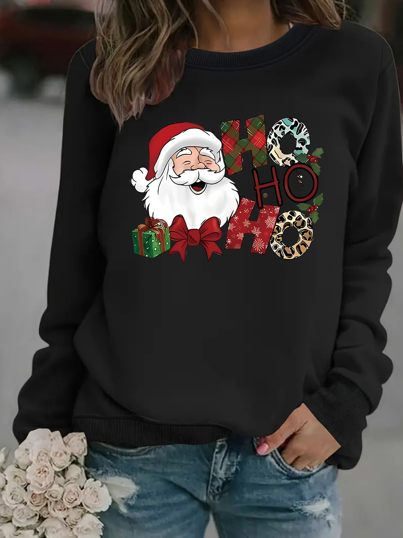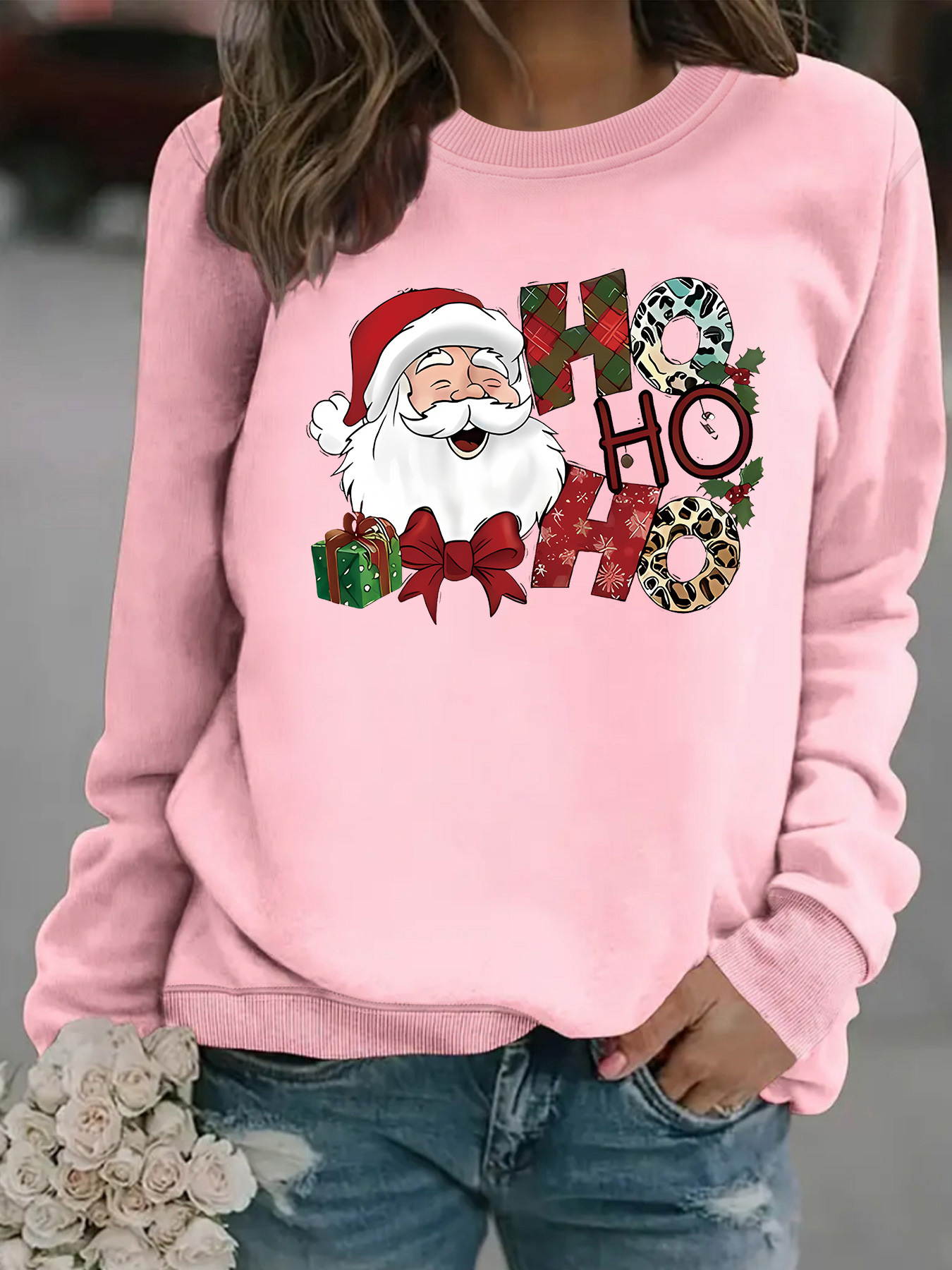Christmas printed round neck hoodie