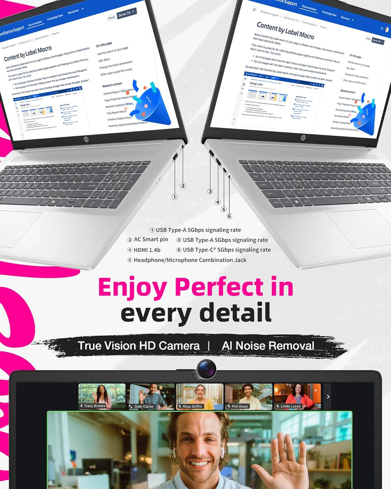 - ➤【Touchscreen & Connectivity】Navigate easily with the 17.3" HD+ touchscreen—great for tapping, scrolling, and zooming. The anti-glare panel offers clear viewing at 250 nits. Stay connected with Wi-Fi 6, Bluetooth 5.3, and ports including 1× USB-C (𝙙𝙖𝙩𝙖 𝙤𝙣𝙡𝙮), 2× USB-A, HDMI, and a headphone/mic jack. Includes 720p HD webcam with dual mics. Note: USB-C does not support charging or display; keyboard is 𝙣𝙤𝙣-𝙗𝙖𝙘𝙠𝙡𝙞𝙩—ideal for bright settings.