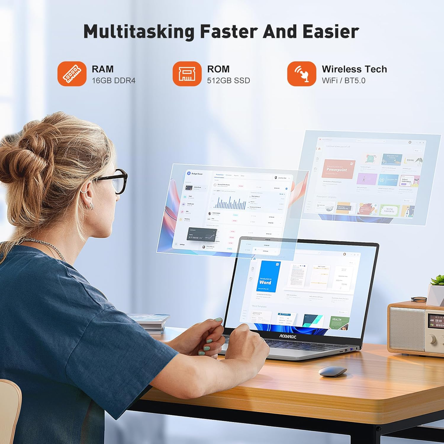 - 【EFFICIENT PERFORMANCE】ACEMAGIC Laptop featuring the latest processor (4 cores/4 threads, 6MB cache, up to 3.4GHz). Its performance is far 𝐦𝐨𝐫𝐞 𝐭𝐡𝐚𝐧 𝟑𝟎% better than others, providing more powerful multitasking capabilities and stronger graphics processing performance. ACEMAGIC traditional laptop is designed to elevate your computing experience.