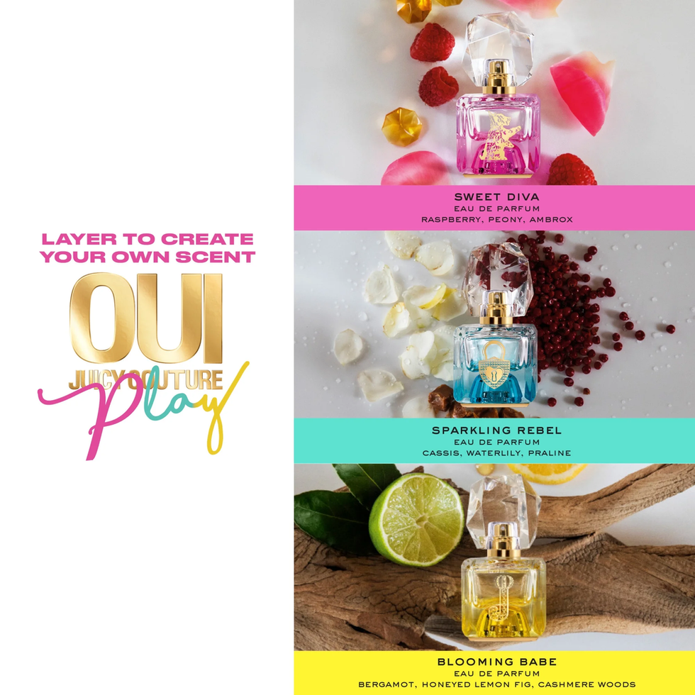 - Layer Sparkling Rebel with Oui Juicy Couture Play Sweet Diva to create a vibrant & delicious scent combination. Or layer Sparkling Rebel with Oui Juicy Couture Play Sweet Diva & Oui Juicy Couture Play Blooming Babe to create a vibrant, delicious & fresh scent combination.