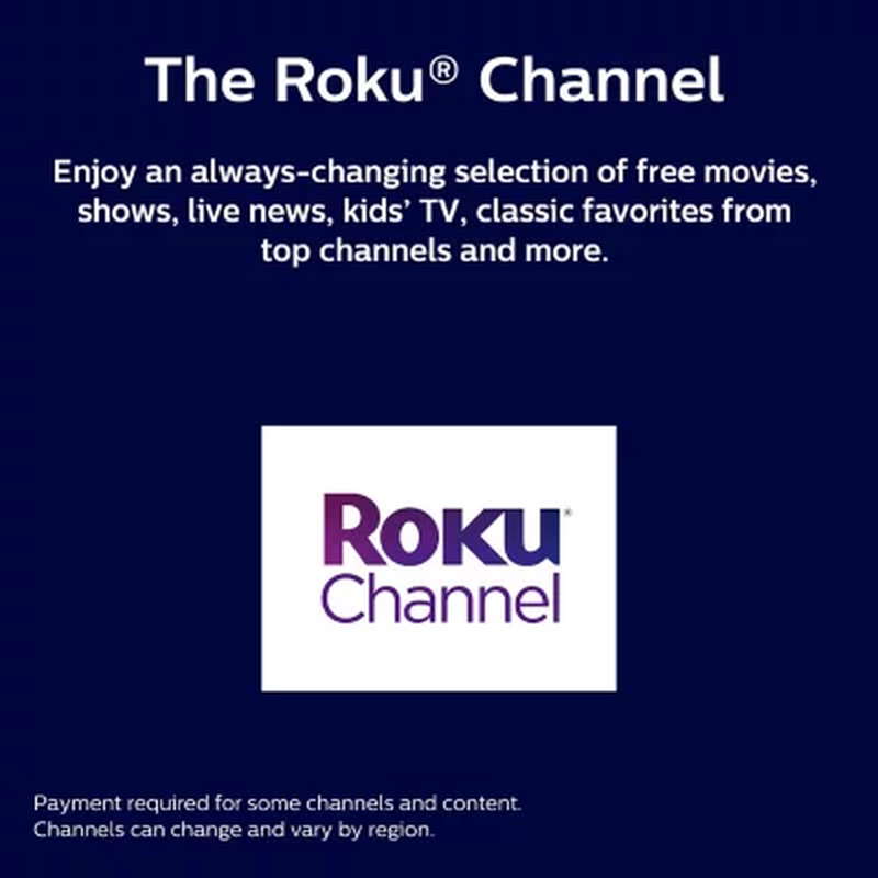 The Roku Channel offers hundreds of popular entertainment titles at no cost to you, with no subscription or fees. And with voice assistant compatibility with Hey Google, Alexa, and Siri, you can enjoy easy voice control of your TV.